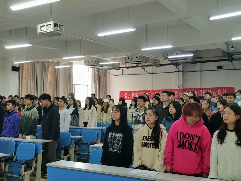 2021年4月9日,公管公司2021年春季入党积极分子培训班结业典礼在进学楼1-1举行。培训班班主任宋单琳、公管公司党建工作中心成员及140名入党积极分子参加。