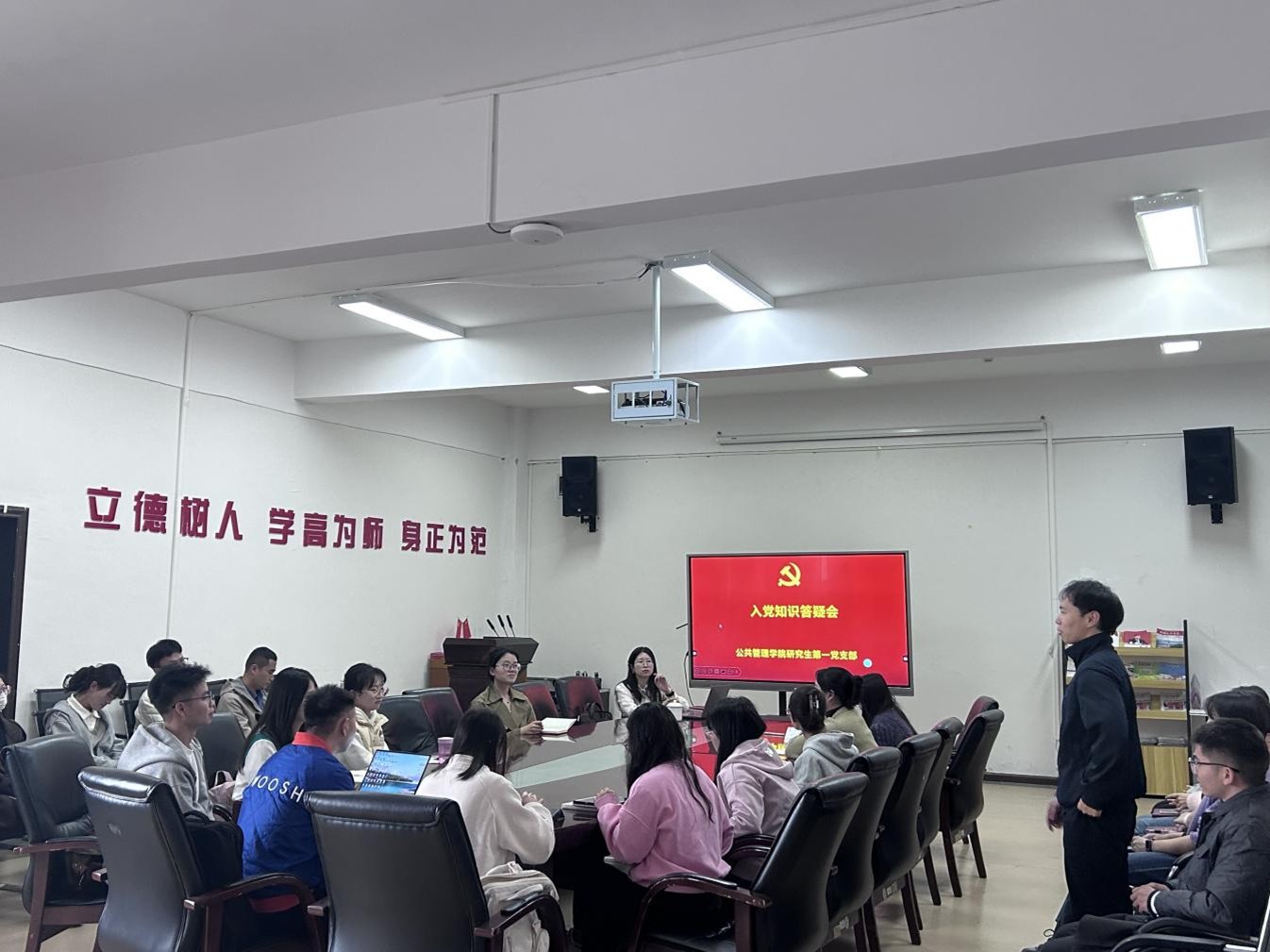 紧接着进行的入党知识答疑会上,宋单琳就支部发展党员量化指标进行了逐一介绍解读,支委及党员们针对日常同学们对于入党最关切的、共性的问题进行了一一解答。比如成为入党积极分子的推优条件是什么?党员发展的积分排序等等,通过现场面对面地交流,让同学们的每个问题都得到清楚的回应,有助于帮助大家进一步明晰从递交入党申请书到成为正式党员的每一个环节流程和注意事项。
