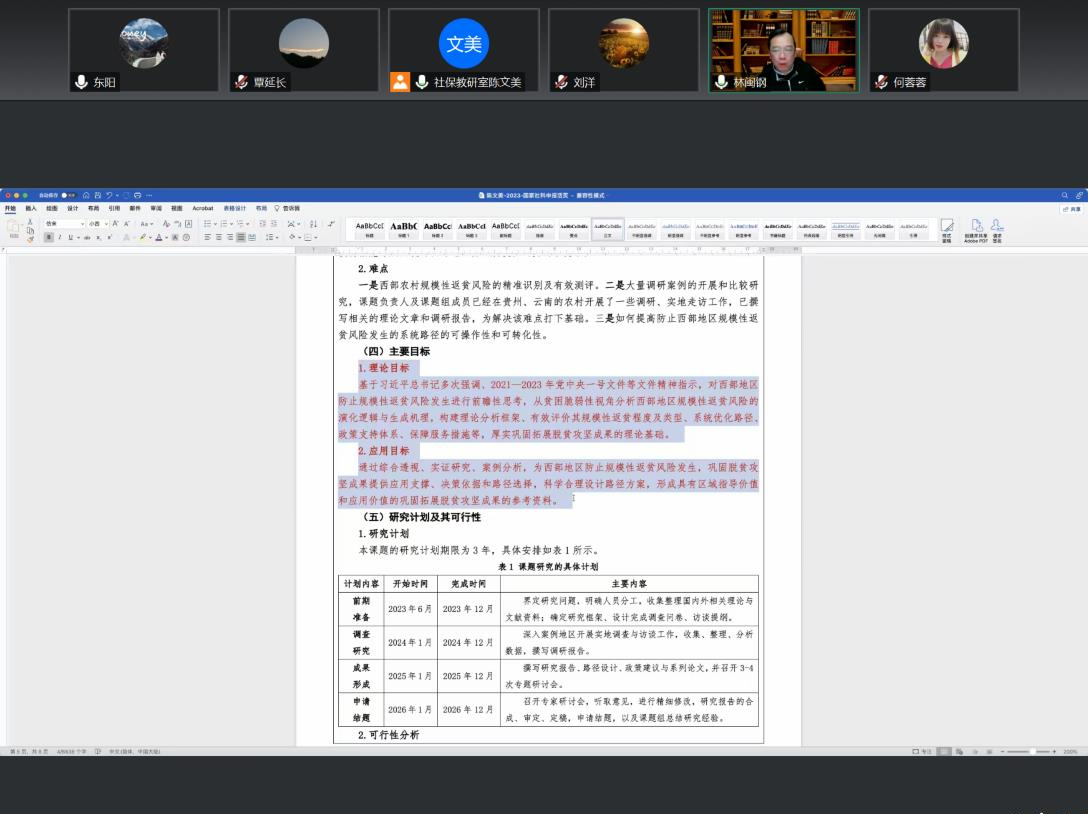 本网讯:(潘东阳 图文报道)为提升国家社科基金项目申报书写作技巧与申报质量,4月9日英国365公司官网社会保障专场通过线上方式举办2023年国家社科基金申报辅导论证会。会议邀请教育部长江学者、南京大学社会保障研究中心林闽钢教授为公司社会保障专业教师进行辅导。