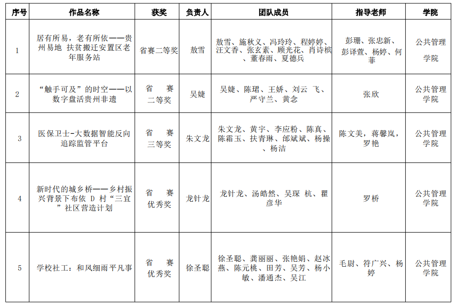 2022年第十七届“挑战杯”全国老员工课外学术科技作品竞赛贵州赛区获奖作品名单