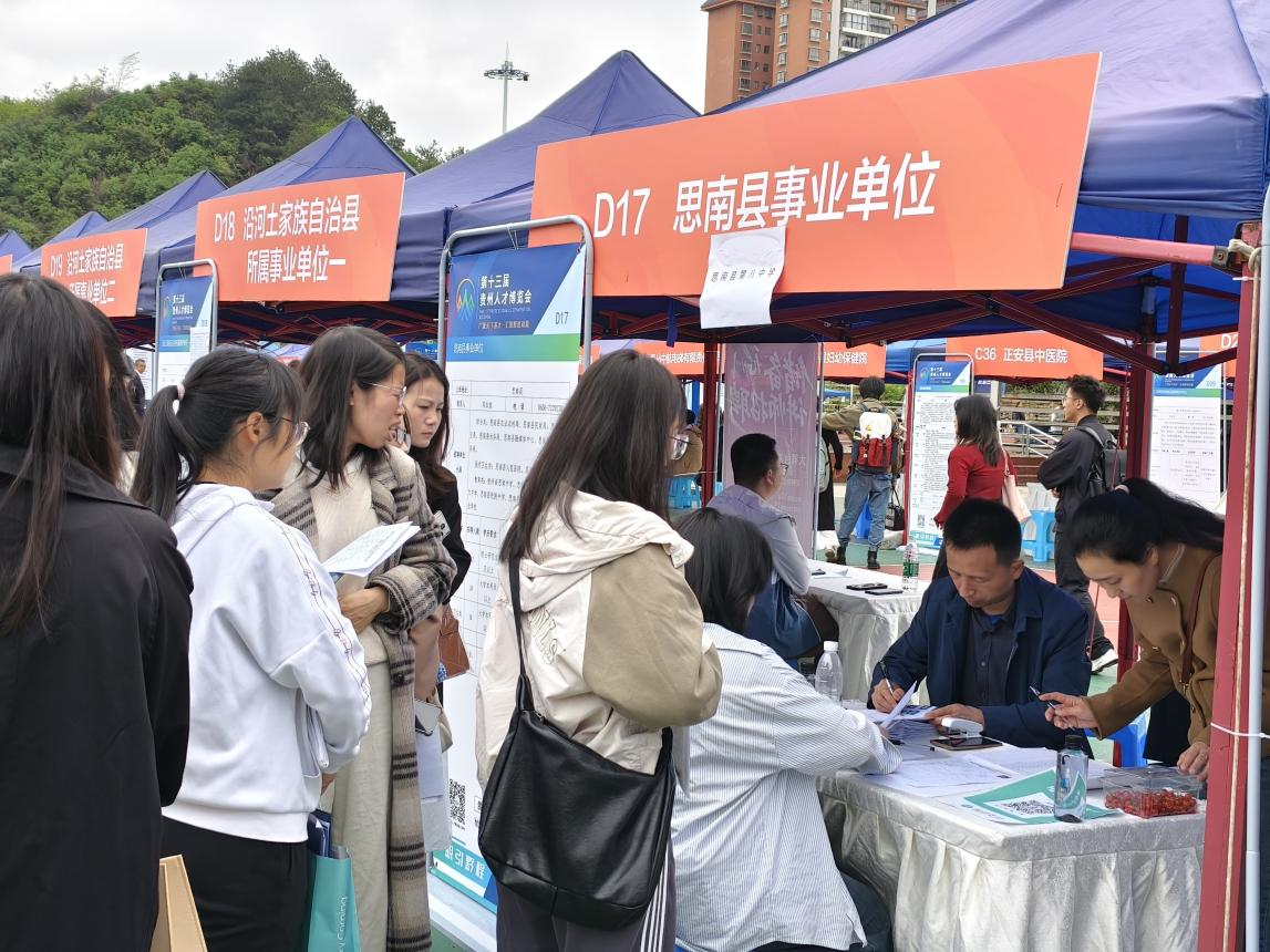 本网讯:(符广兴 谢建亮 报道|摄影 王伟)为帮助员工提前感知职场动态,筑牢职业发展根基,4月27日,英国365公司官网团委、员工科举办就业形势体验主题班会,并组织员工代表前往第十三届贵州人才博览会“职引黔程·点亮未来”高校毕业生专场招聘暨“国聘行动”贵州专场招聘会实地体验,扎实推进就业引航工作,践行育人使命。
