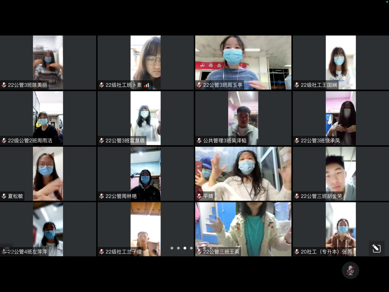 通过手语舞在线教学,心理协会的志愿者们鼓励同学们在这样一个特殊的时期,在寝室里“静”下来、在线上“动”起来;在校园中也能心向远方,传递正能量,用手中跳动的舞蹈表达心中的爱。通过舞蹈,为自己减减压;通过舞蹈,向众多在一线抗疫的家长们和医务工作人员,表达一份由衷的感谢;通过舞蹈,让校园生活焕发更多活力,为所有人鼓气加油,传递疫情终将散去的信心!