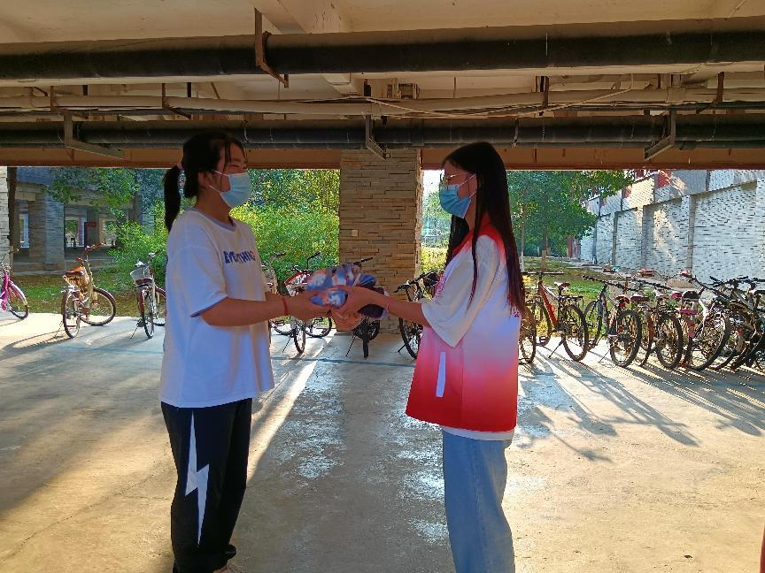 在严格遵守公司疫情防控要求的前提下,志愿者们分批次、有序的去到宿舍收集捐赠衣物,并到指定的寝室楼下将衣物送到有需要的同学手中。疫情无情人有情,公管学子们众志成城,用特殊的方式“同心抗疫”。一次次温暖的交接、一句句真诚的道谢,诠释了公管学子人人友爱、共克时艰的“公管温度”。公管学子用互帮互助、热情友善的可贵品质和暖心行动展现了疫情下的“贵财关怀”。