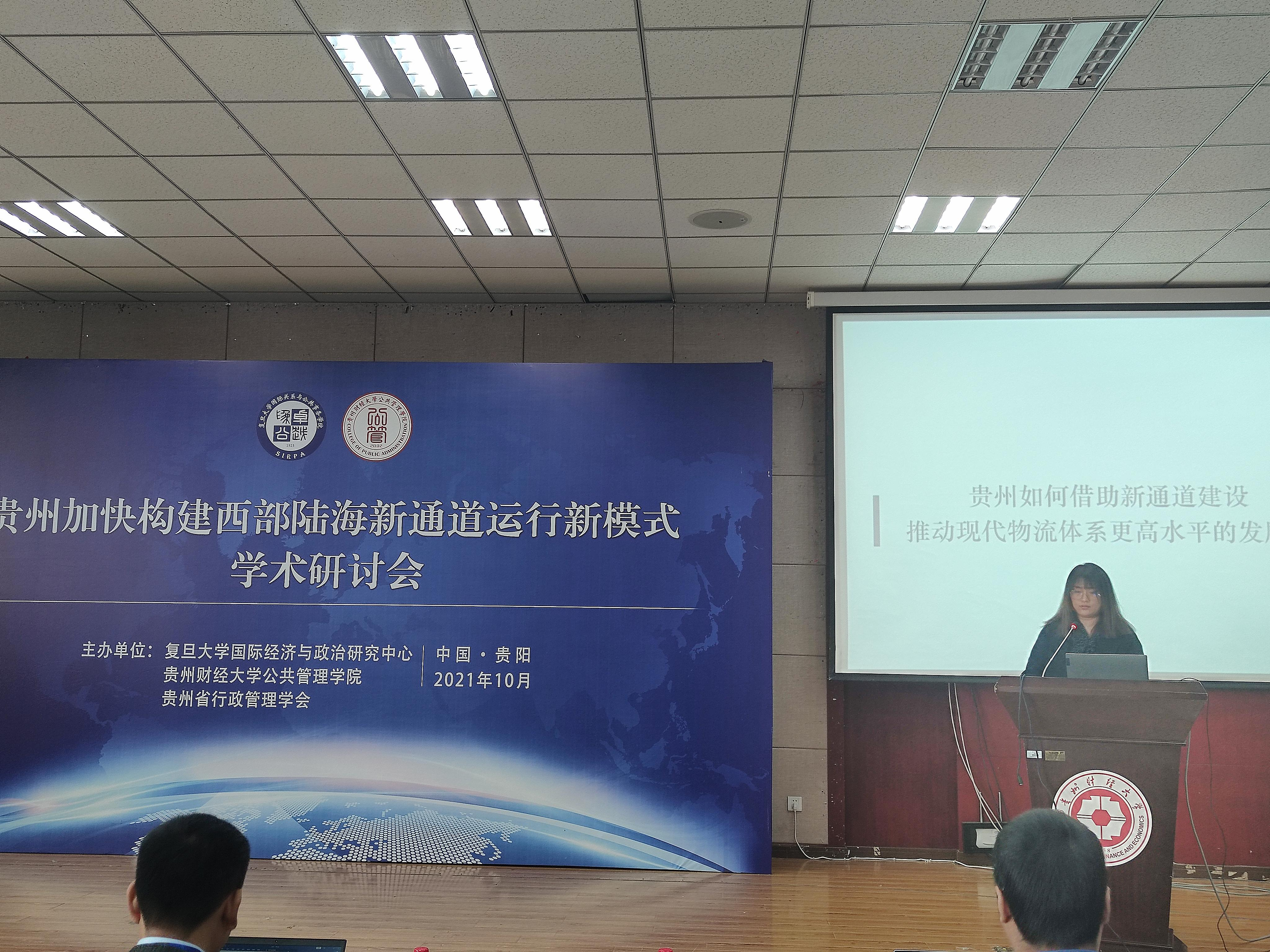 来自复旦大学国际关系与公共事务公司博士生王润琦以《陆海新通道背景下现代物流服务体系构建》为题进行发言,她认为贵州作为陆海新通道建设和运行的重要一环,意义重大,但目前物流成本偏高、信息化程度较低、高端物流专业人才短缺,整体发展水平滞后,这些都是未来需要突破的重点方向。