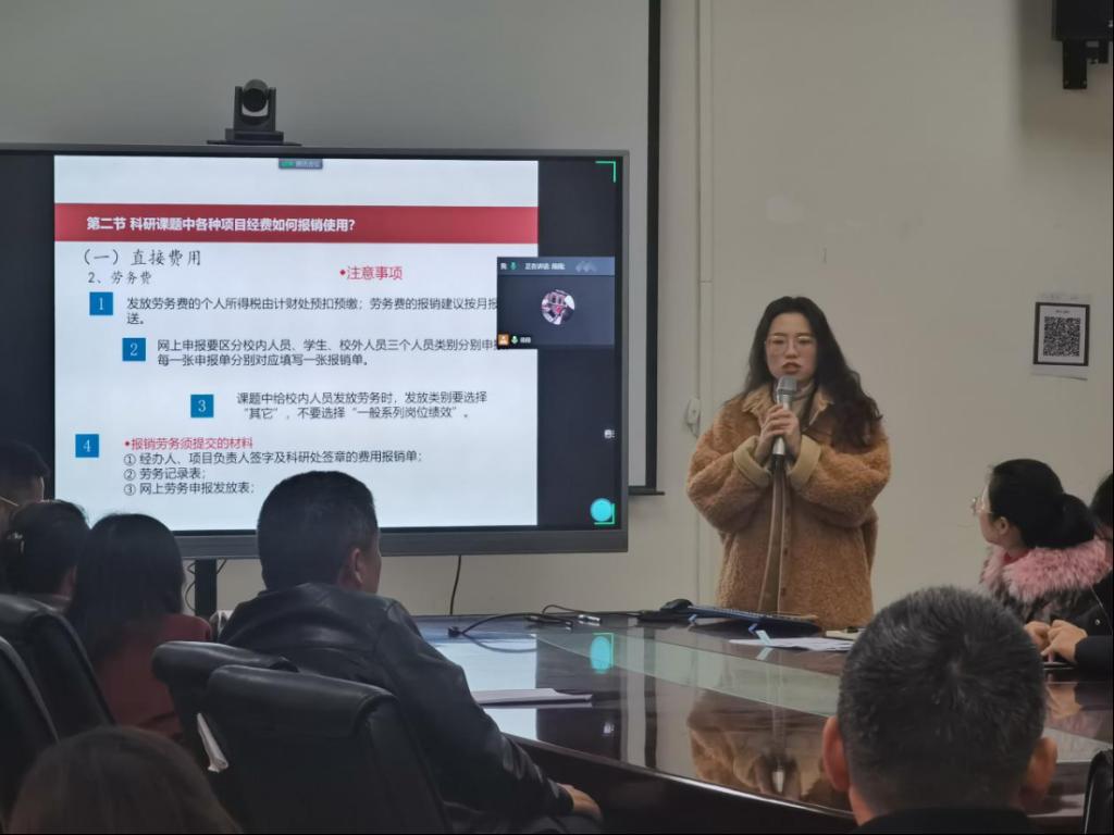 随后,进行了一堂关于报销相关规范的培训,由计财处驻公司派遣会计段滢主讲。主要就报销的票据填报规范、单据投递程序以及咨询费、评审费、劳务费发放标准要求等进行讲解。并就老师们的疑问做现场解答。