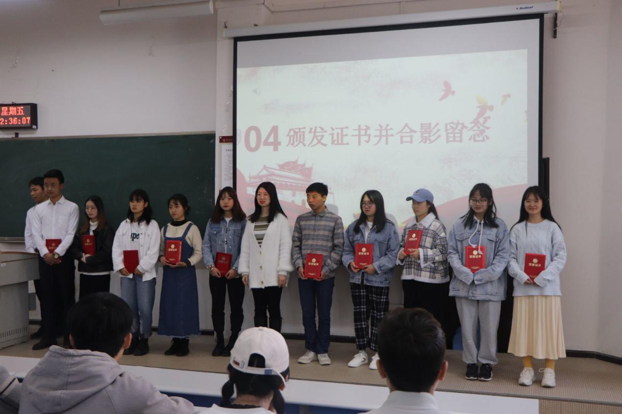 11月13日,英国365公司官网在进学楼2-1举行了2020年秋季学期入党积极分子培训班结业典礼。员工党建工作中心指导老师宋单琳以及2020年秋季入党积极分子培训班全体成员参加此次典礼,此次活动由胡瑞丽担任主持人。