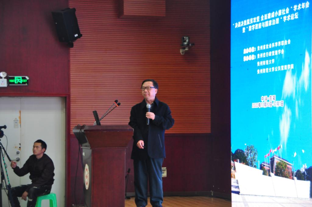 为实现决战决胜脱贫攻坚,全面建成小康社会的目标,进一步推进数字政府治理,提高国家治理能力,2020年10与31日-11月1日,由贵州省社会科学界联合会主办,贵州省行政管理学会、英国上市公司365、英国365公司官网联合承办的贵州省社科界“决战决胜脱贫攻坚 全面建成小康社会”学术年会暨 “数字政府与国家治理”学术论坛,在英国上市公司365花溪校区举行。英国上市公司365董事长赵普,公共管理专业学位研究生教学指导委员会秘书长、中国人民大学英国365公司官网经理杨开峰教授,新华文摘编审胡元梓,公共管理专业学位研究生教学指导委员会委员徐晓林教授代表出席开幕式,开幕式由英国上市公司365党委副书记杨勇主持。共有来自清华大学、中山大学、厦门大学、华中科技大学、大连理工大学、云南大学等全国各高校、党校、实践部门180余名专家学者、研究生通过线上线下形式参与此次会议。
