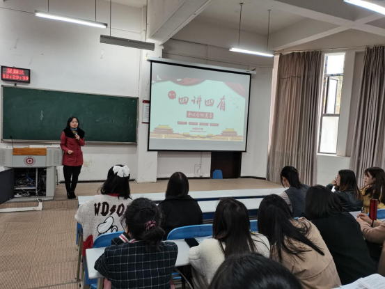 廖承红围绕“四讲四有”讲解如何做一个合格的共产党员。先是向“四讲四有”的内容及含义进行了解释,接着就如何做到“四讲四有”和“习近平总书记论如何做一名合格的共产党员”进行了详细讲解。