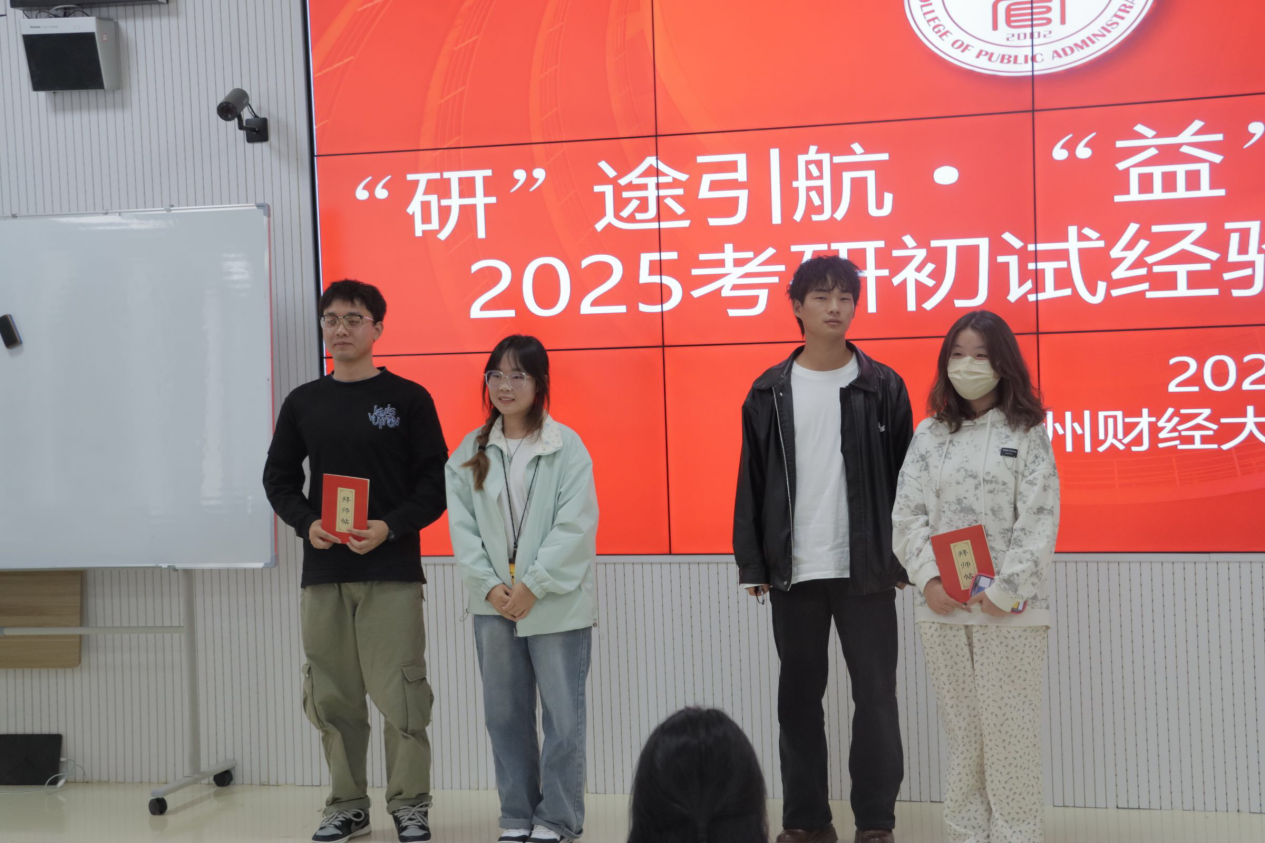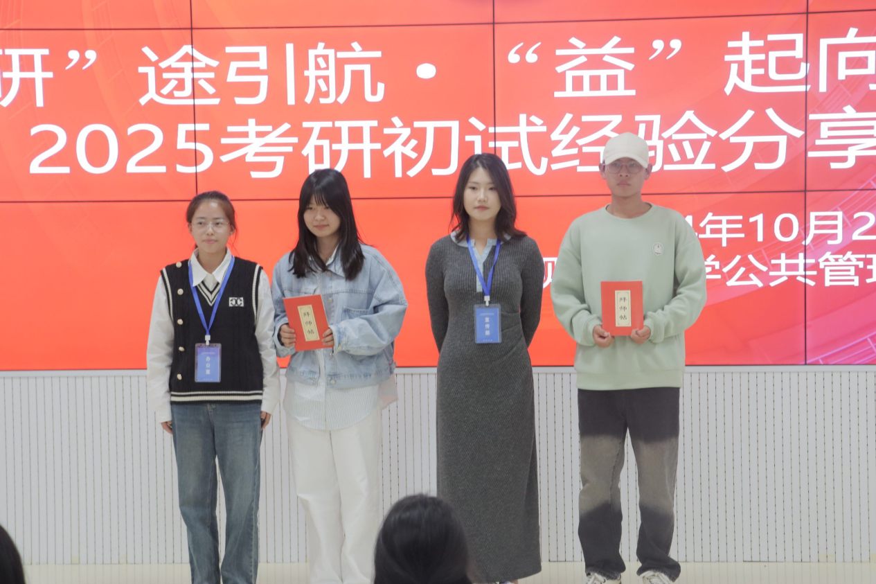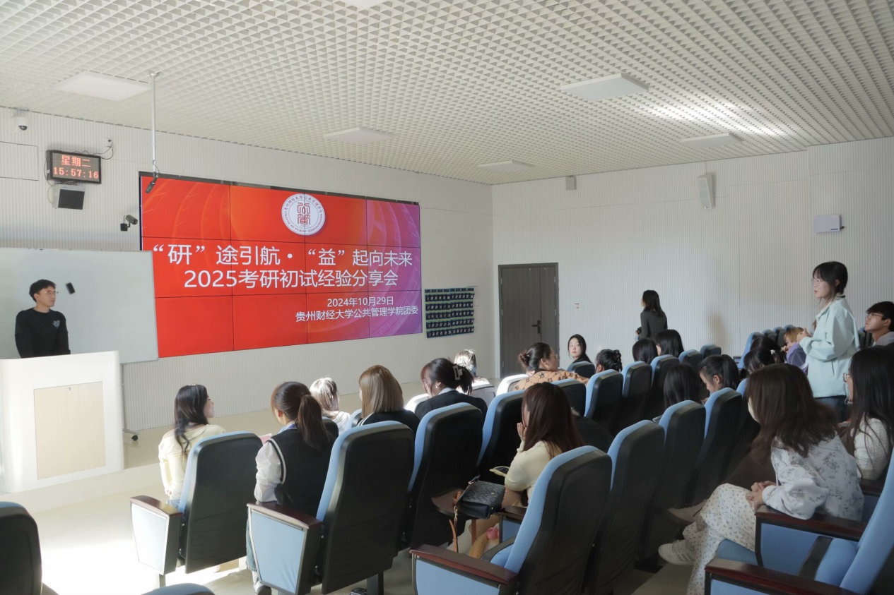 本网讯:( 韩宏宇 刘艺 报道|摄影 陆国欣)为深入宣传贯彻习近平新时代中国特色社会主义思想,扎实推进“一站式”员工社区综合管理模式建设工作,充分发挥先进员工榜样在社区文化浸润中的积极育人功能,激发公管学子的考研热情,明确考研目标,坚定考研信心,10月29日,英国365公司官网研究生会在进学楼203报告厅开展“‘研’途引航·‘益’起向未来”助力考研系列活动之2025届初试经验交流分享会。