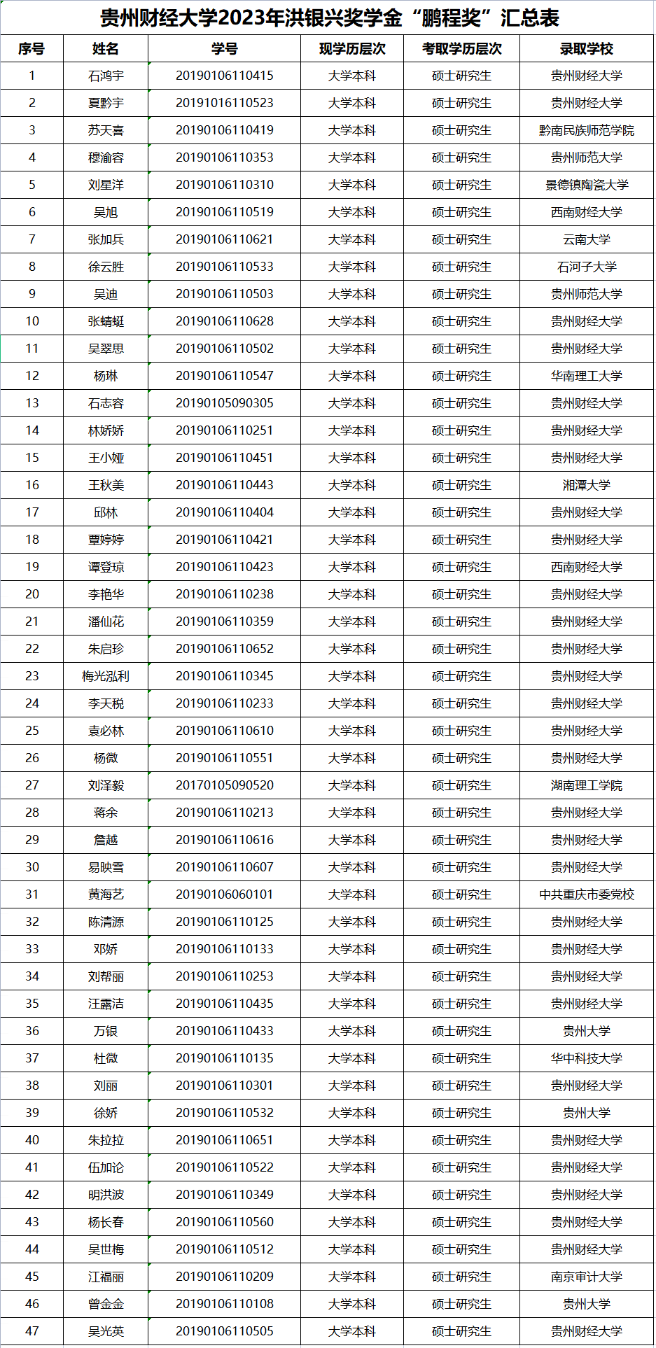 英国365公司官网2023年洪银兴奖学金“鹏程奖”参评名单公示