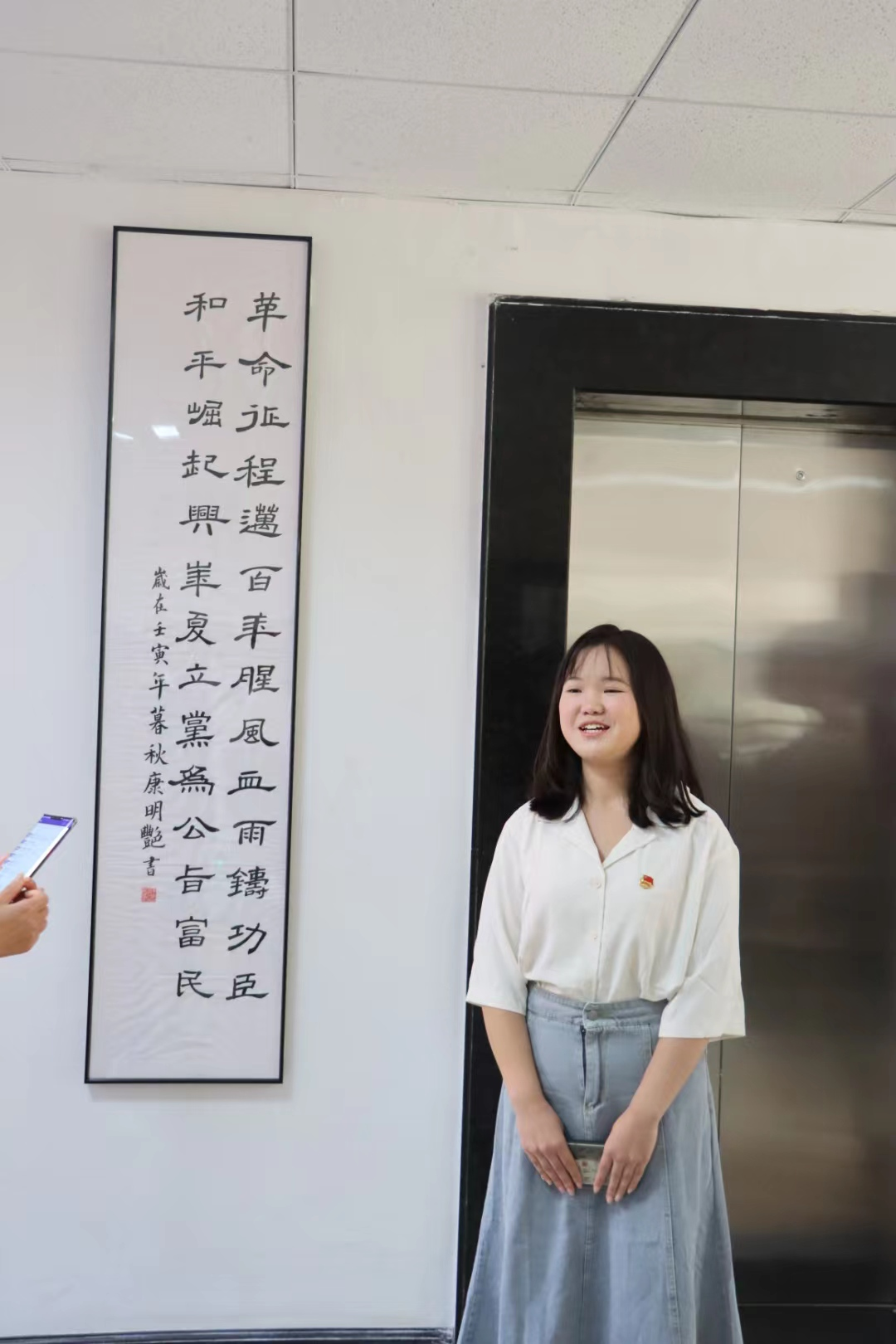 公司党委书记廖承红出席书画展开展仪式。她指出,深入学习宣传贯彻党的二十大精神,是当前和今后一个时期的头等大事。青年老员工是宣传党的大精神的先锋队和生力军,要先学一步、学深一层、了然于胸、运用自如,不说空话、套话,要深入理解和准确把握十八大以来党和国家取得的新成就,坚持学讲结合、教学相长,提升宣讲的针对性实效性,确保入耳入脑入心入行。
