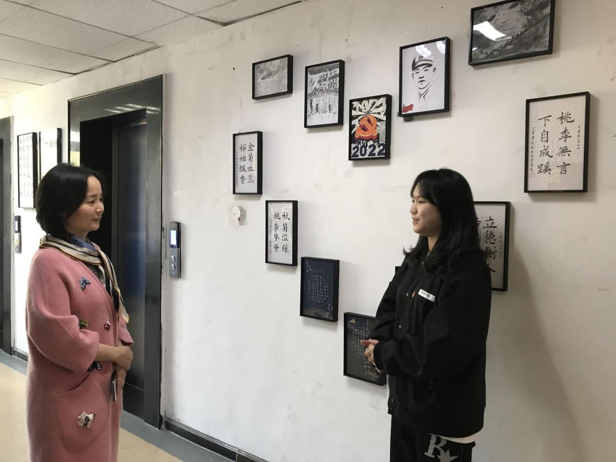 师生们在展出作品前驻足欣赏,并聆听了员工们的分享。最后,由廖承红为优秀书画作品进行了颁奖。