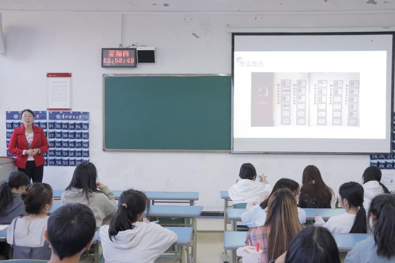 张月娥以“身边榜样”为引,介绍了乡村振兴先锋、教书育人先锋、学术科研先锋、社会服务先锋和优秀青年学子,循循善诱,鼓励同学们向身边榜样学习,激发同学们的入党热情。