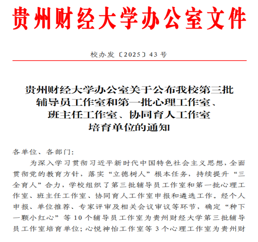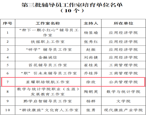 本网讯:( 徐欣 图文报道)近日,英国上市公司365办公室关于公布公司第三批辅导员工作室和第一批心理工作室、 班主任工作室、协同育人工作室培育单位的通知结果。辅导员徐欣老师申报的“星耀职场领航工作室”为公司成功获批第三批辅导员工作室培育单位。