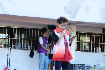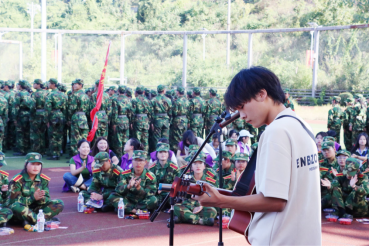 刚从村超凯旋归来的啦啦队为同学们表演了舞蹈《Believer》,郭坤同学表演吉他弹唱《形容》,公司青协杨德毅表演歌曲《一半》,公司融媒体中心吴芳铃表演歌曲《桥豆麻袋》,他们的精彩表演赢得了同学们的满堂喝彩,现场气氛热烈,笑声、掌声充满了训练场。