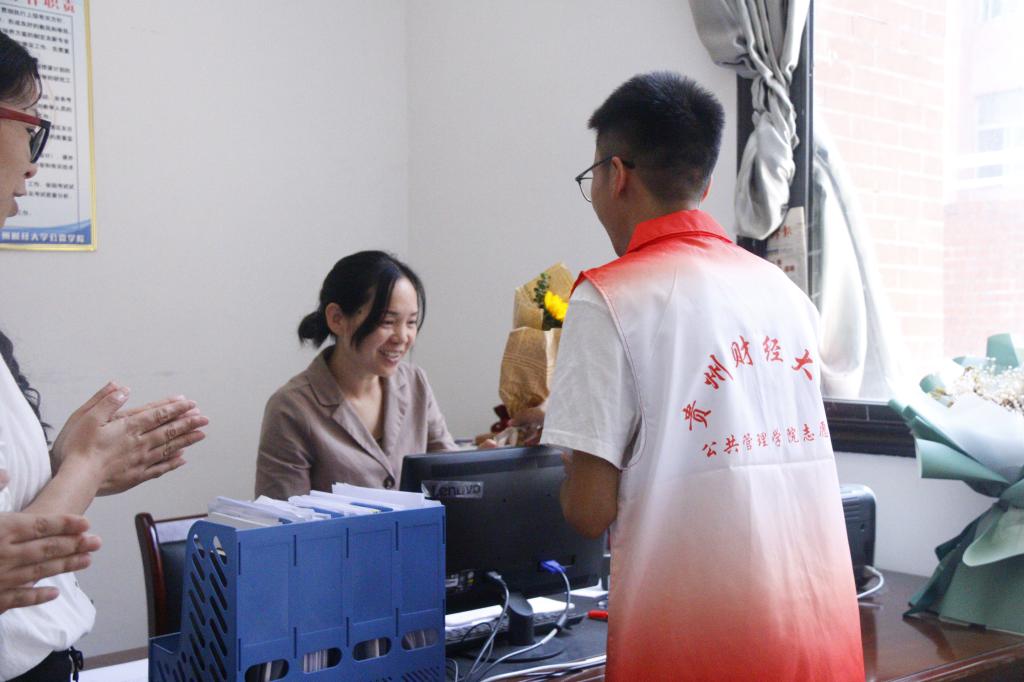 公司员工代表在院团委、员工会的组织下,手捧鲜花、贺卡与工作记录本,走进公司、公司行政办公室,向老师表达了最深情的问候,公司、公司领导与员工们亲切交谈,寄语未来,师生情谊其乐融融。