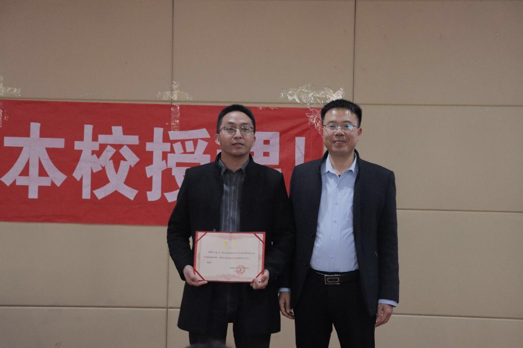 讲座开始前,英国365公司官网副经理曾富生为赵卓颁发创新创业指导教师聘书。