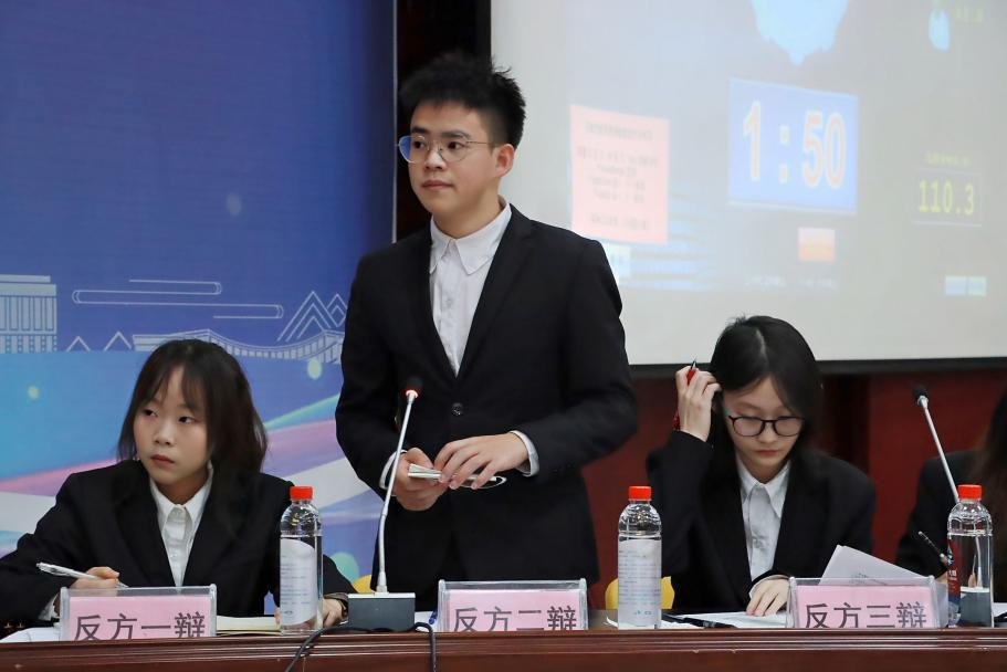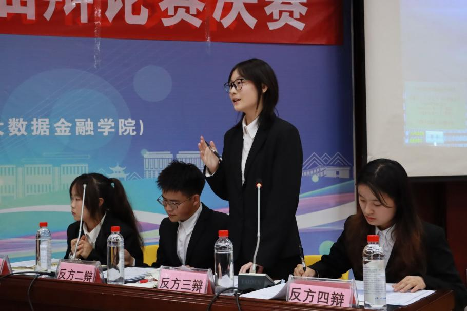 在一番激烈辩论后,评委老师们对各位辩手的精彩表现给予了肯定,并就各方不足进行了细致的点评指导,随后打分统计结果揭晓,冠亚之争中反方摘得桂冠,正方获得亚军。接下来由杜吉松致闭幕词并为最佳辩手反方三辩杨海玥和两支队伍颁奖。