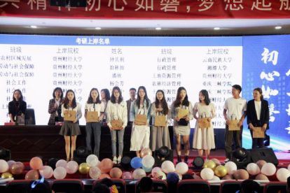 接着由考取研究生代表周奕发言,对母校多年的培养表示由衷的感谢,即使离开了公司也会永远牢记自己是一名贵财学子,牢记“厚德博学,笃行鼎新”的校训。依依惜别母校,公管情长留心间。
