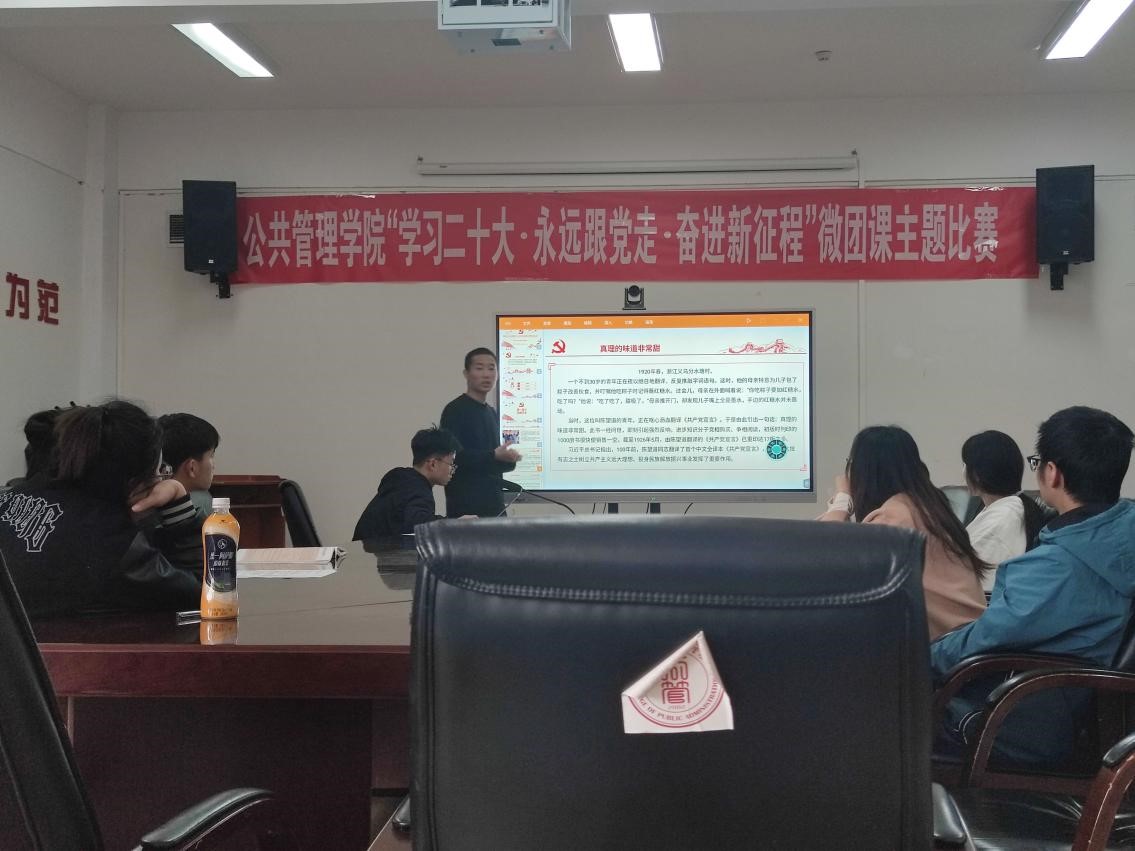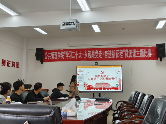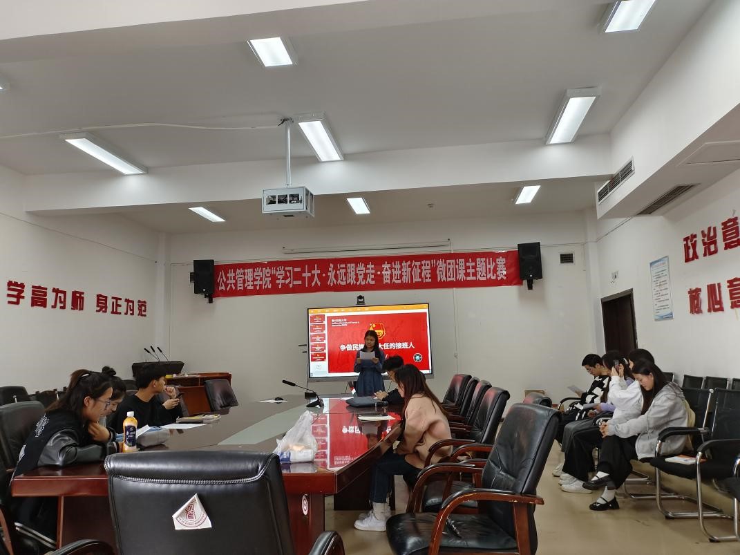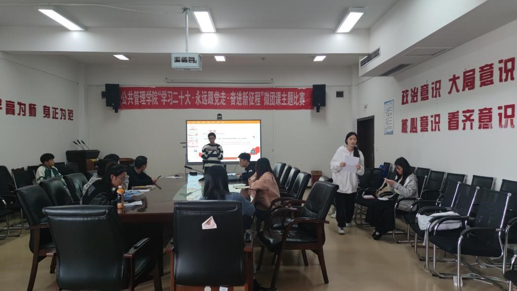 本网讯:(唐文艳 报道|摄影 丁翠萍)为深入学习贯彻党的二十大精神,学习党领导青年运动的光辉历程,弘扬五四精神,继承革命传统,坚定广大团员青年跟党走的理想信念,同时贯彻落实《贵州省高校共青团改革实施方案》文件精神,规范落实团支部“三会两制一课”,全面提升团支部组织力,强化团支部政治功能。5月10日,英国365公司官网于正德楼201会议室开展以“学习二十大 永远跟党走 奋进新征程”为主题的微团课大赛初赛。