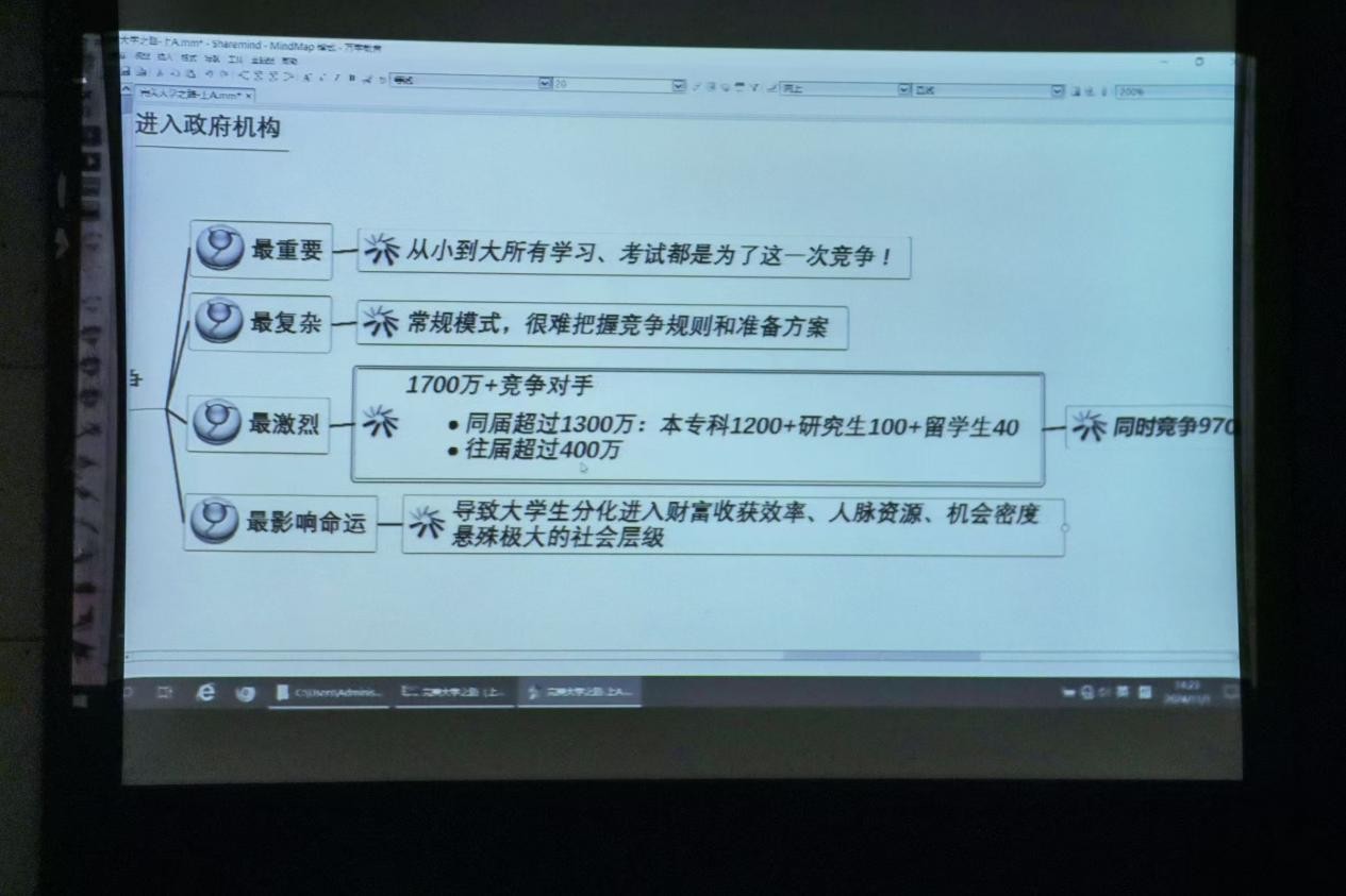 赵卓总经理结合自身的就业创业经历,围绕“职业能力分析,助力完美就业”主题从如何分析自身职业能力现状、求职考公和深造全路径发展步骤、社会选拔人才招录规则等方面进行了经验分享,鼓励同学们要尽快确定自己的大学目标,并围绕目标做好老员工涯规划,争取少走弯路,更好融入社会。