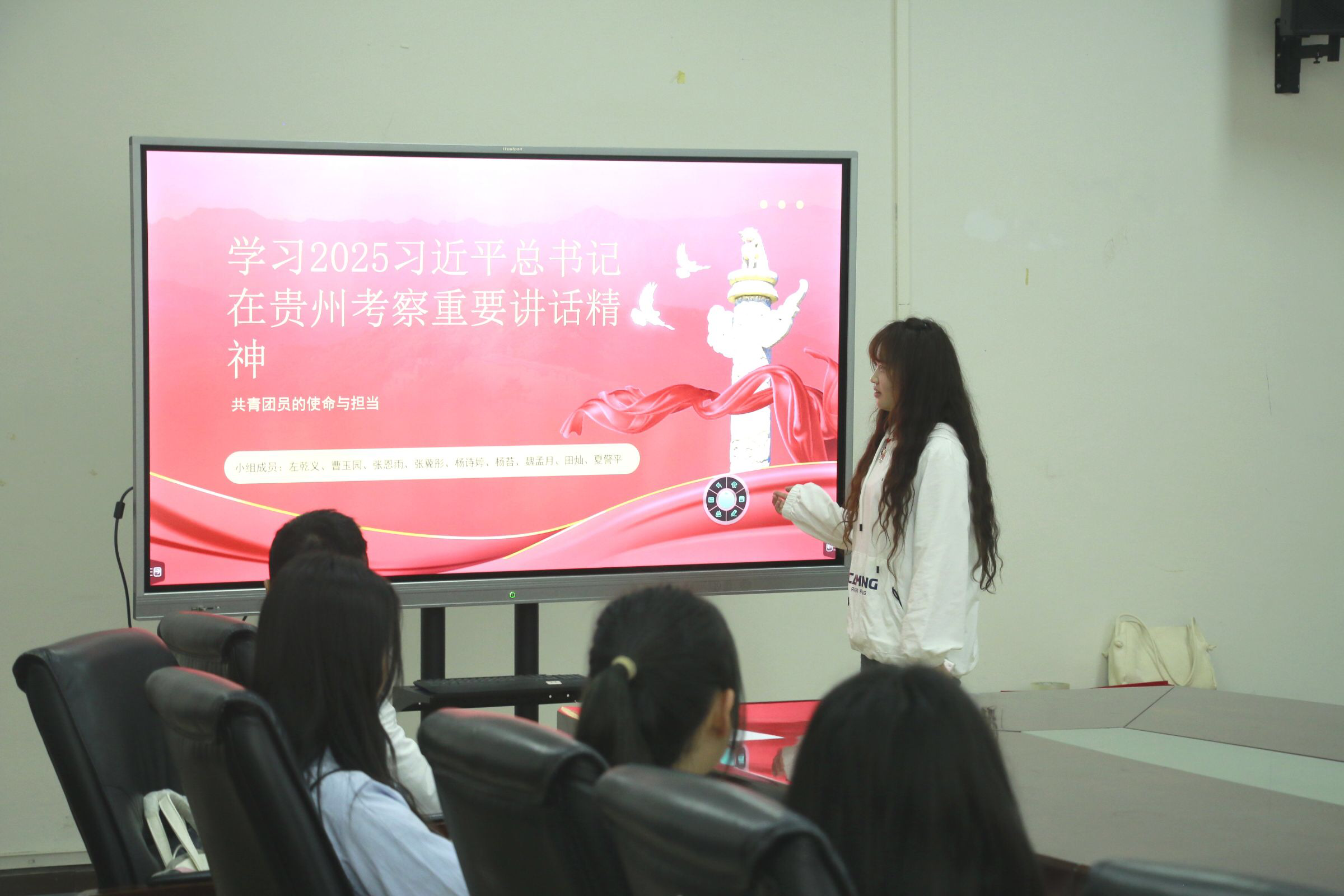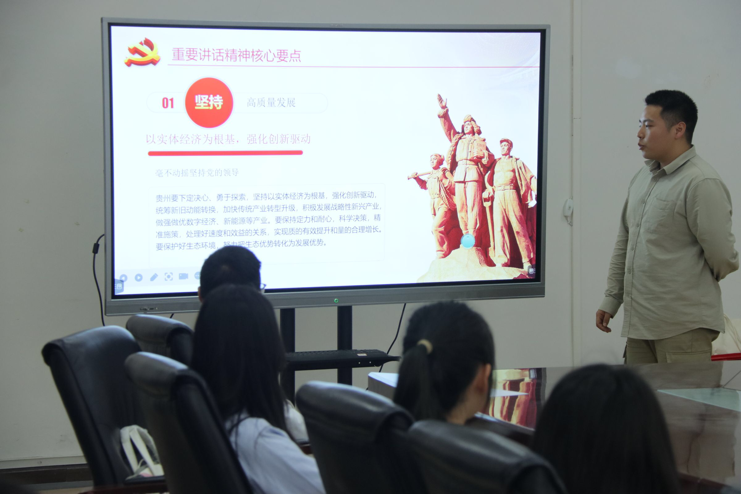 随后,活动进入小组汇报环节。同学们分成若干小组,围绕习近平总书记在贵州考察时的重要讲话精神,从不同角度深入研究,并以精彩的汇报形式展示学习成果。有的小组聚焦乡村振兴战略,分享了贵州在产业扶贫、乡村治理等方面取得的显著成就,以及如何进一步推动农业农村现代化的思考;有的小组着眼于数字经济发展,探讨了贵州大数据产业的崛起对全国数字经济战略实施的启示,以及青年员工在数字时代应具备的技能和素养;还有的小组关注生态文明建设,分析了贵州在生态保护与绿色发展方面的成功经验,强调了践行“绿水青山就是金山银山”理念的重要性。各小组的汇报内容丰富、观点新颖,充分展现了同学们对习近平总书记重要讲话精神的深入理解和积极思考。