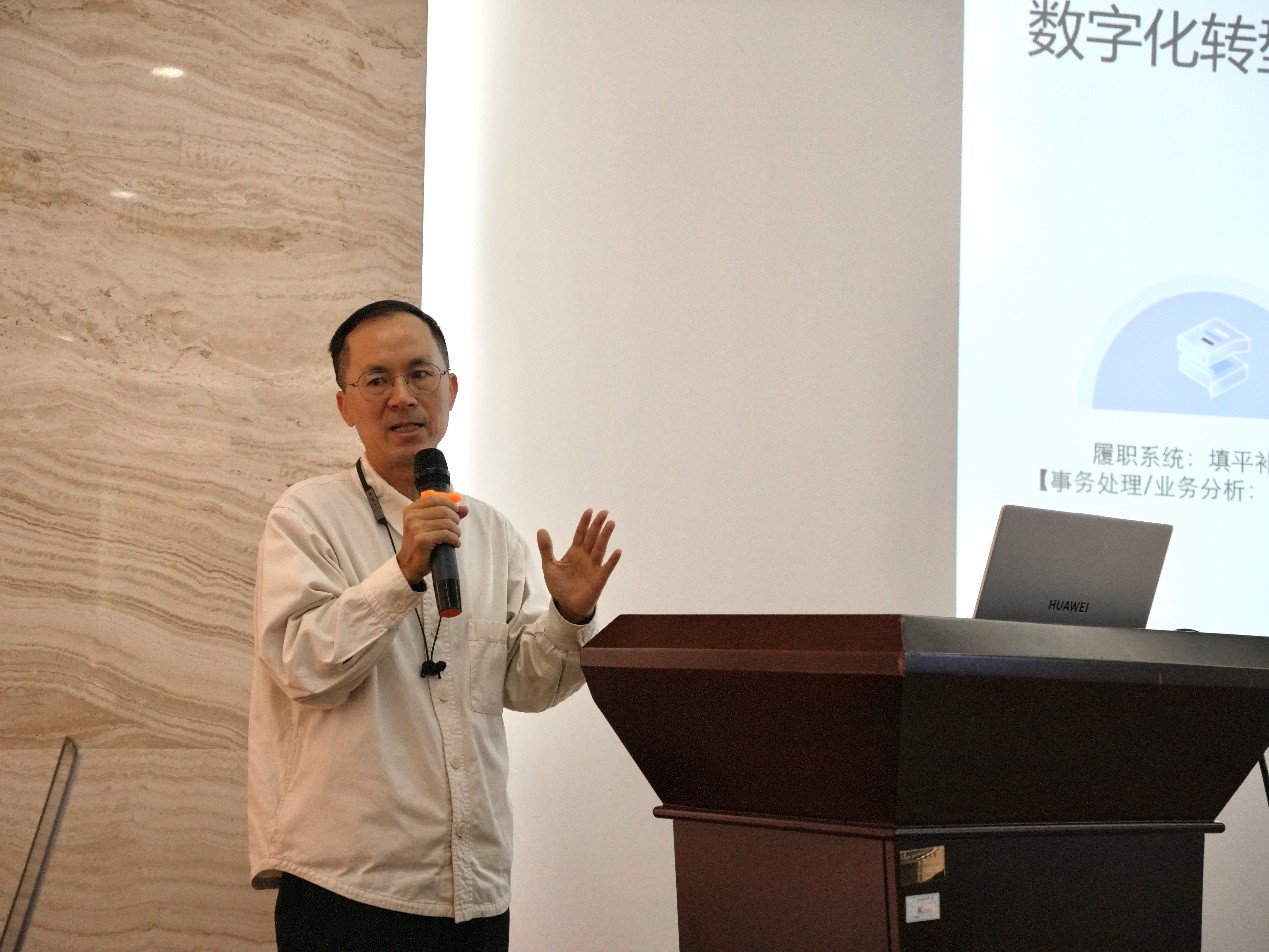 江源富研究员发表题为《政府数字化转型路径初探——数据协同场景分享》的主旨演讲。聚焦于数字化转型需要开展的系统间组织间连接工作,围绕第二代第三代互联网环境的信任度、业务成熟度、业务办理模式、业务决策及交付方式等,介绍了数据协同的理念及实践路径。实验室樊梅副教授在该环节通过“新生儿出生一件事”的真实场景,通过整理工作底稿、业务设计、作业配置等环节,展示了管理类学科师生参与数字化转型项目实施的可行路径。