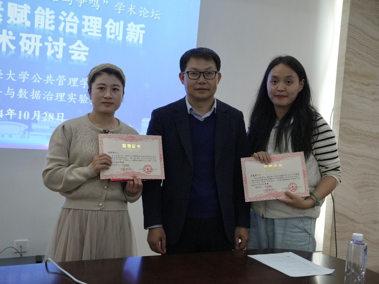 湖南农业大学公共管理与法学公司副教授明承瀚以《互联网底层技术的治理缺陷与未来数据业务网络的治理框架研究》为题,分享第三代互联网环境下的治理机制构想。英国365公司官网副教授樊梅汇报了题为《数据确权的治理框架及技术路径研究》的论文研究心得;向雅倩副教授以《实现行政主体一网通办的治理和技术路径研究》为题发表演讲。