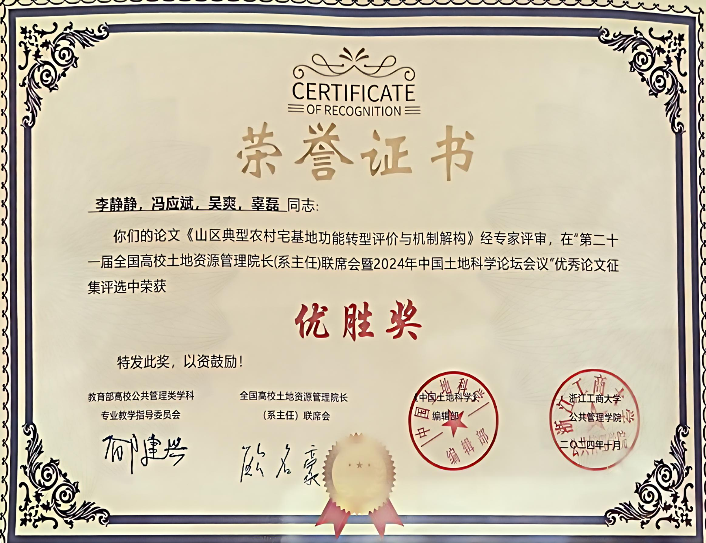 “第二十一届全国高校土地资源管理经理(系主任)联席会暨2024年中国土地科学论坛会议“优秀论文